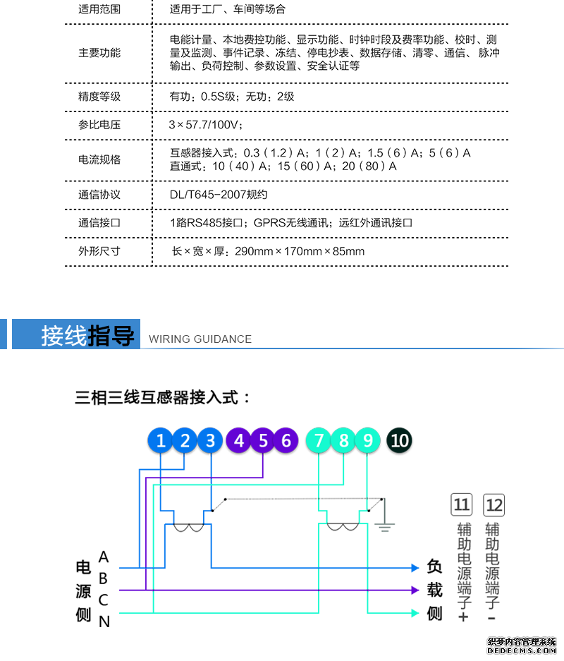 主要功能:有功,功率因素,有功功率,無功功能,四象限無功,電壓,電流,事件報警,費控